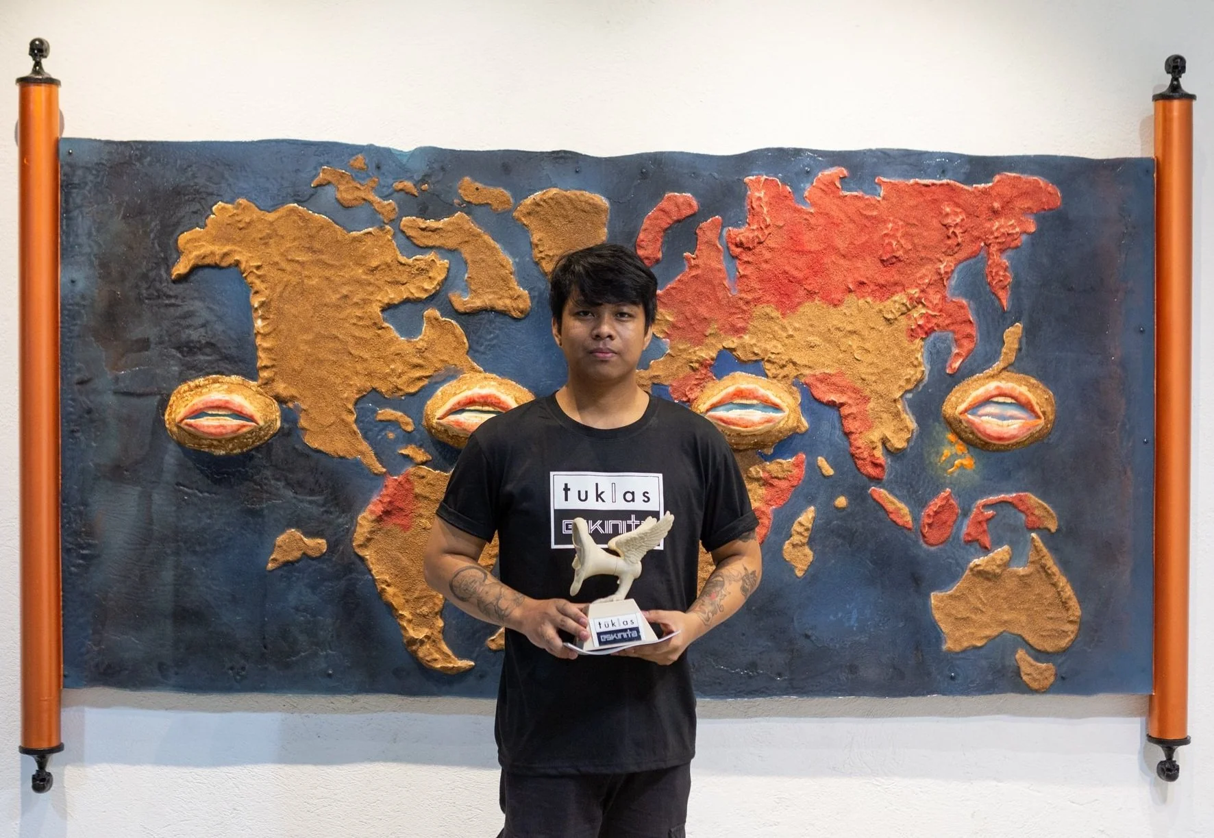 Ace Navarro is a Filipino surrealist artist from Tarlac City, Philippines. He earned his bachelor's Degree in Fine Arts, major in Advertising at Tarlac State University in 2019. The subject of his works usually focuses on racism, feminism, and social issues and also on zoomorphism themes, like mutant creatures painted in his signature sweet color schemes and variations in a bas-relief. He is also a tattoo artist and craftsman, and his knowledge of doing some crafts and tattooing includes in his works. Resin and epoxy are the main materials in his works, his works preserve values, morality, history, and humanity.