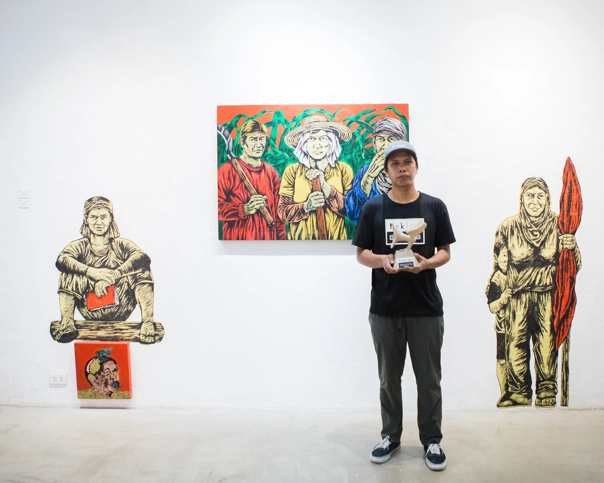 Bryan Barrios is a self-taught artist-activist from Valenzuela City. His works revolve around a staunch oneness with his works' subjects. The streets, being his subjects' main ground, become an apt platform for his practice making it both accessible to them and visible to those who must see them.