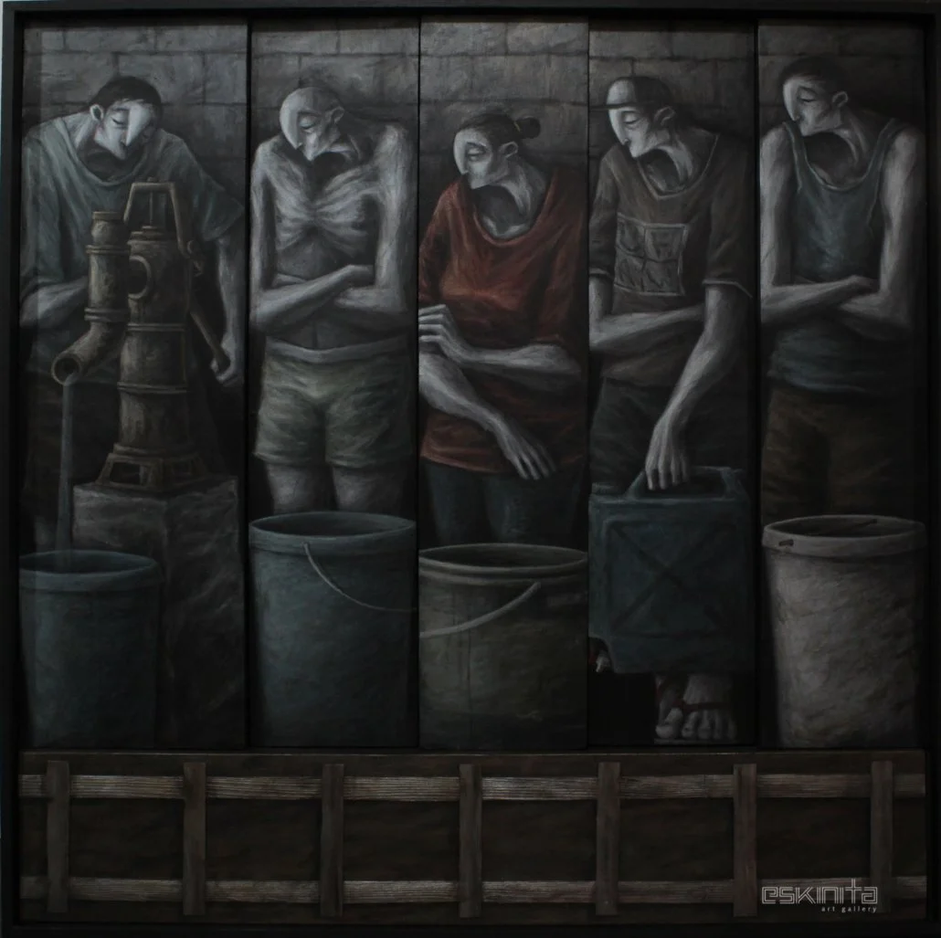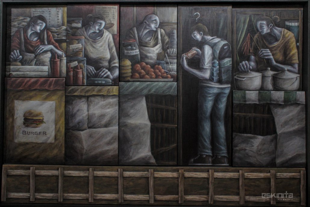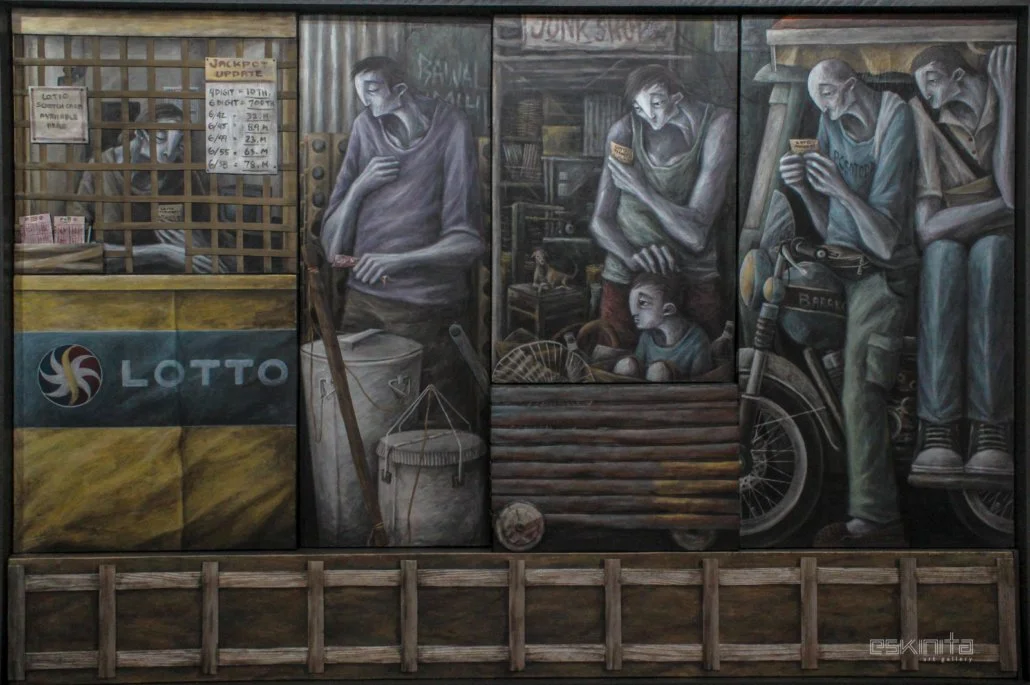 Cedrick is a figurative expressionist who undeviatingly delves on social realism, and the cultural implication of various societal issues. He is known for his unconventional figuration of his subjects that are distorted but based from human’s real figures. His main medium is Acrylic and multi panels or polyptych, to provide emphasis to his subject’s individuality and the relevant depth of each of their stories.
