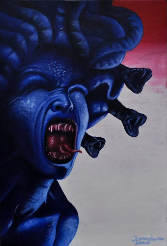 Emman Netollama’s work looks at the transition of a relationship between a friend who had suddenly become an enemy. Netollama illustrates how an ally betrays you in your moment of vulnerability.