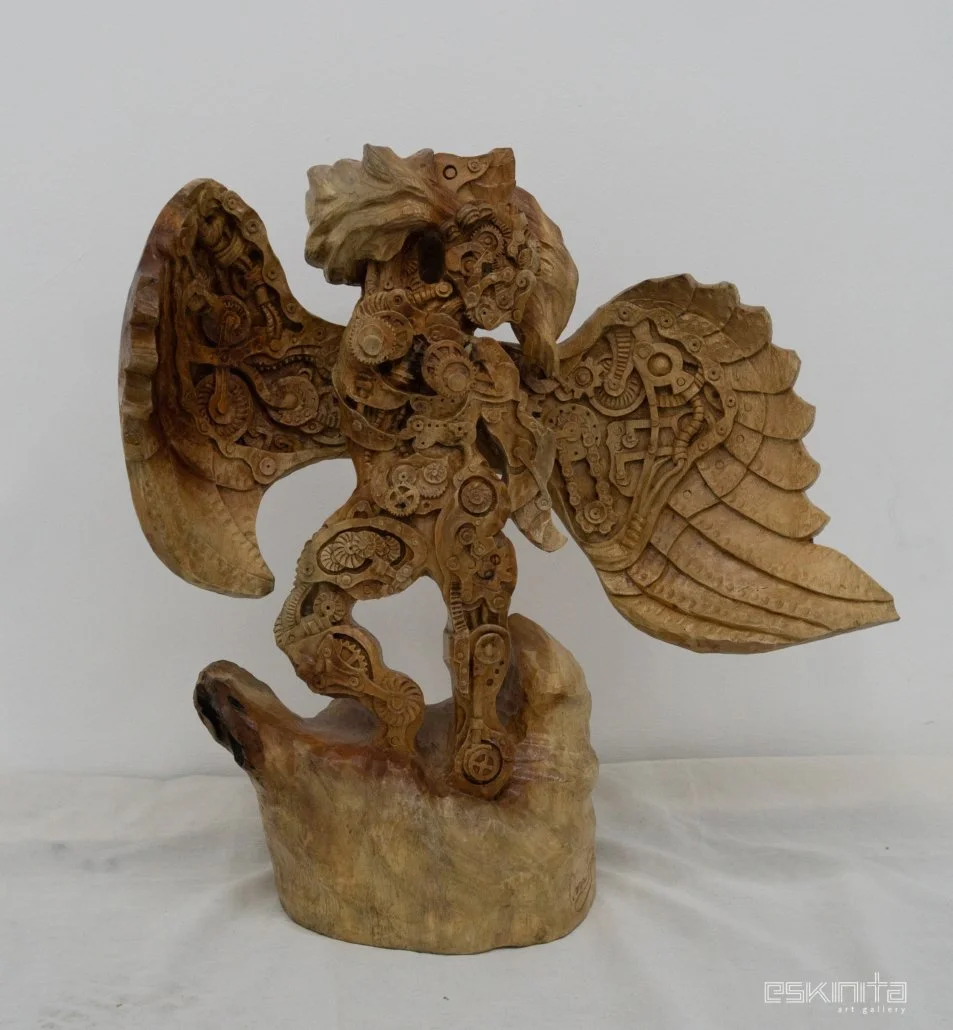 Dennis is an artist from Cavite. (b. 1987) He communicates steampunk mechanical art through his wooden sculptures, and conveys their historical importance.