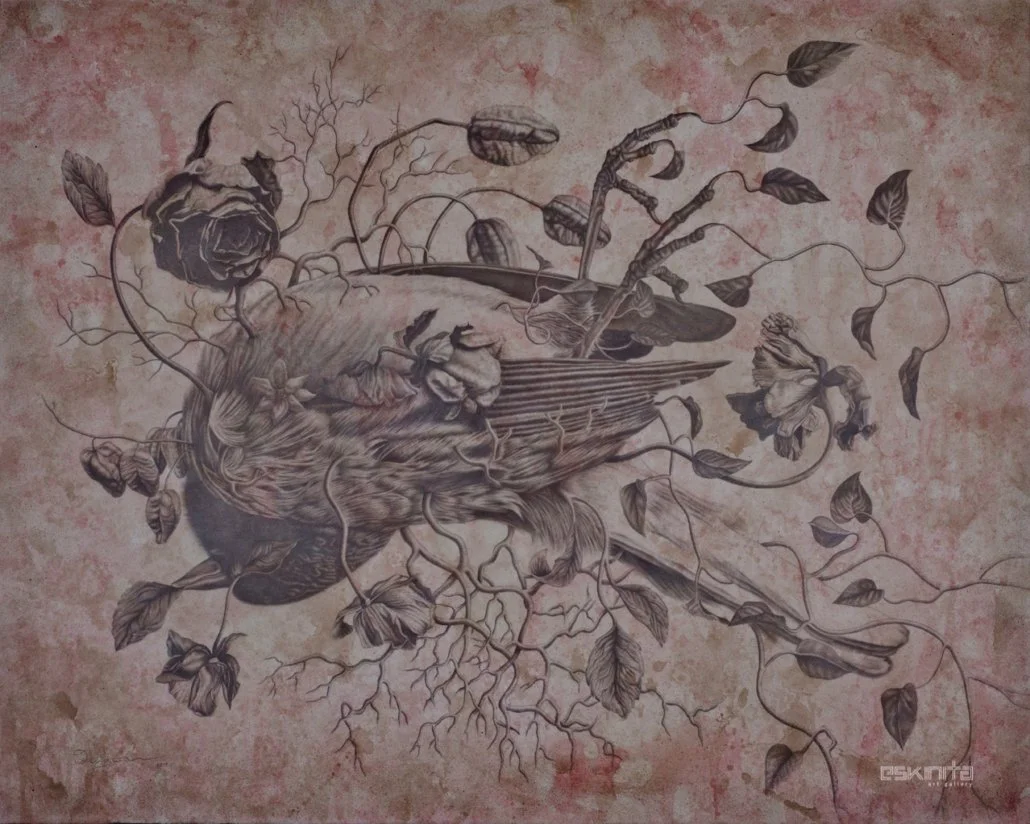 Quizon likes to dwell on the ambivalence of life. His works mostly pay attention on death and its perplexing appearance and role in the natural world. He takes a close scrutiny into human beings’ existential wonder, of that which fills the gap, or that which makes purposeful of the quintessence of life; the certainty of temporality.