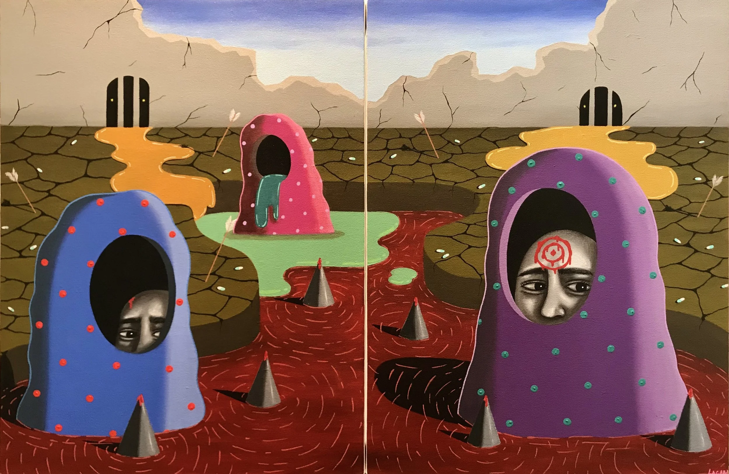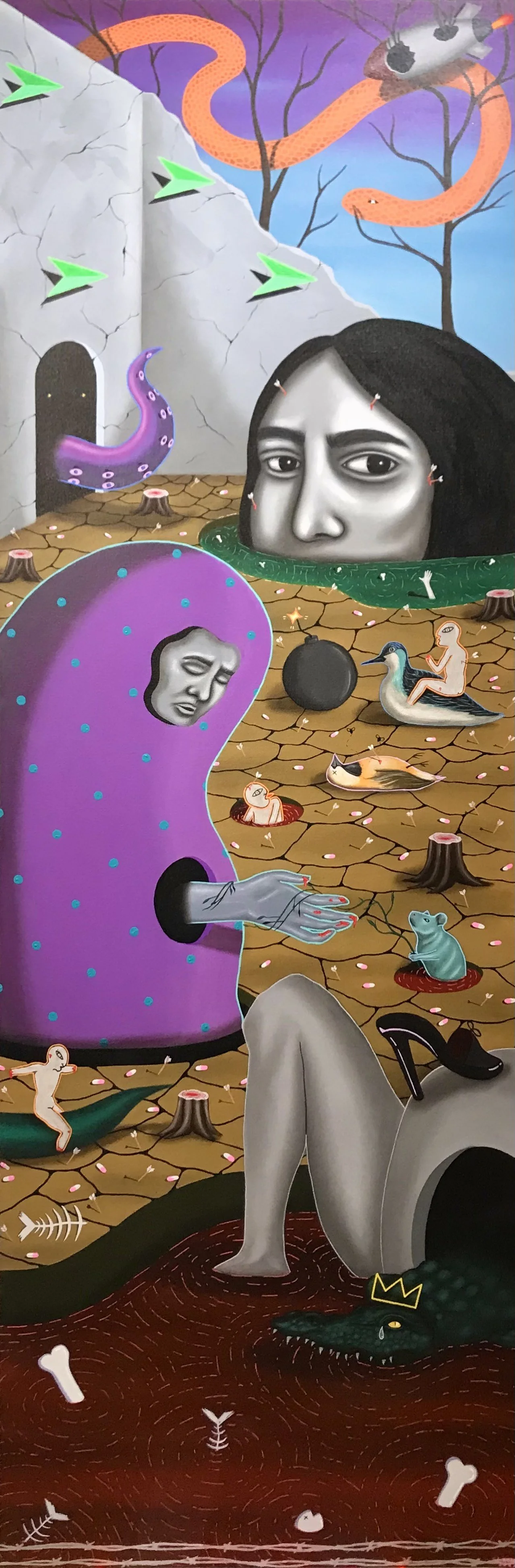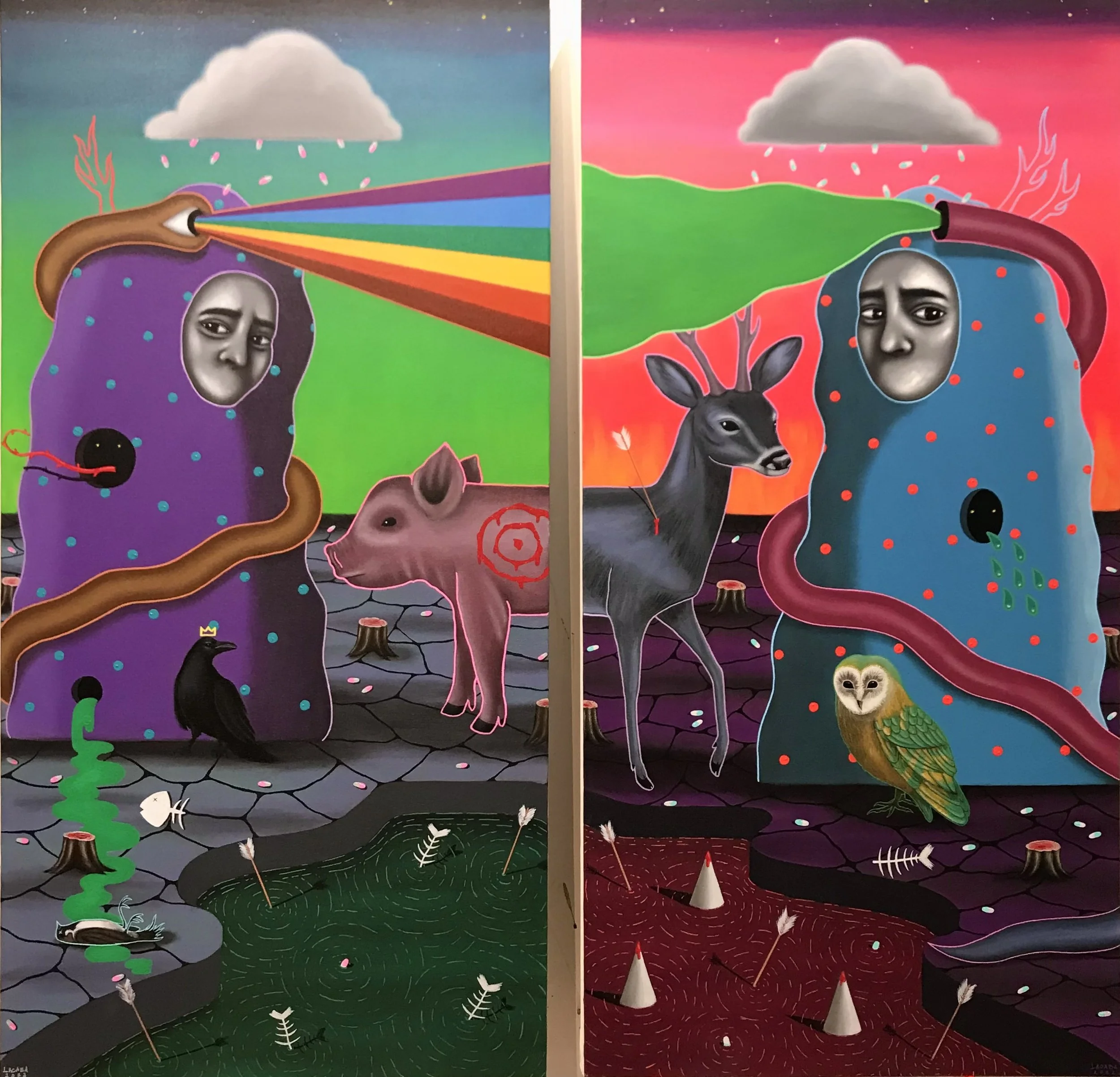 Puno’t Dulo Puno the two-man exhibition of Ben Albino and Rachel Anne Lacaba at the Eskinita Art Farm ushers in to thematically create a critical dialogue between them juxtaposing politics, culture and the environment while taking a hard deep pun intended while we are on the cusp of a new government wrought already by repeated lies, unsolved corruption and long ulterior plan to revise history.