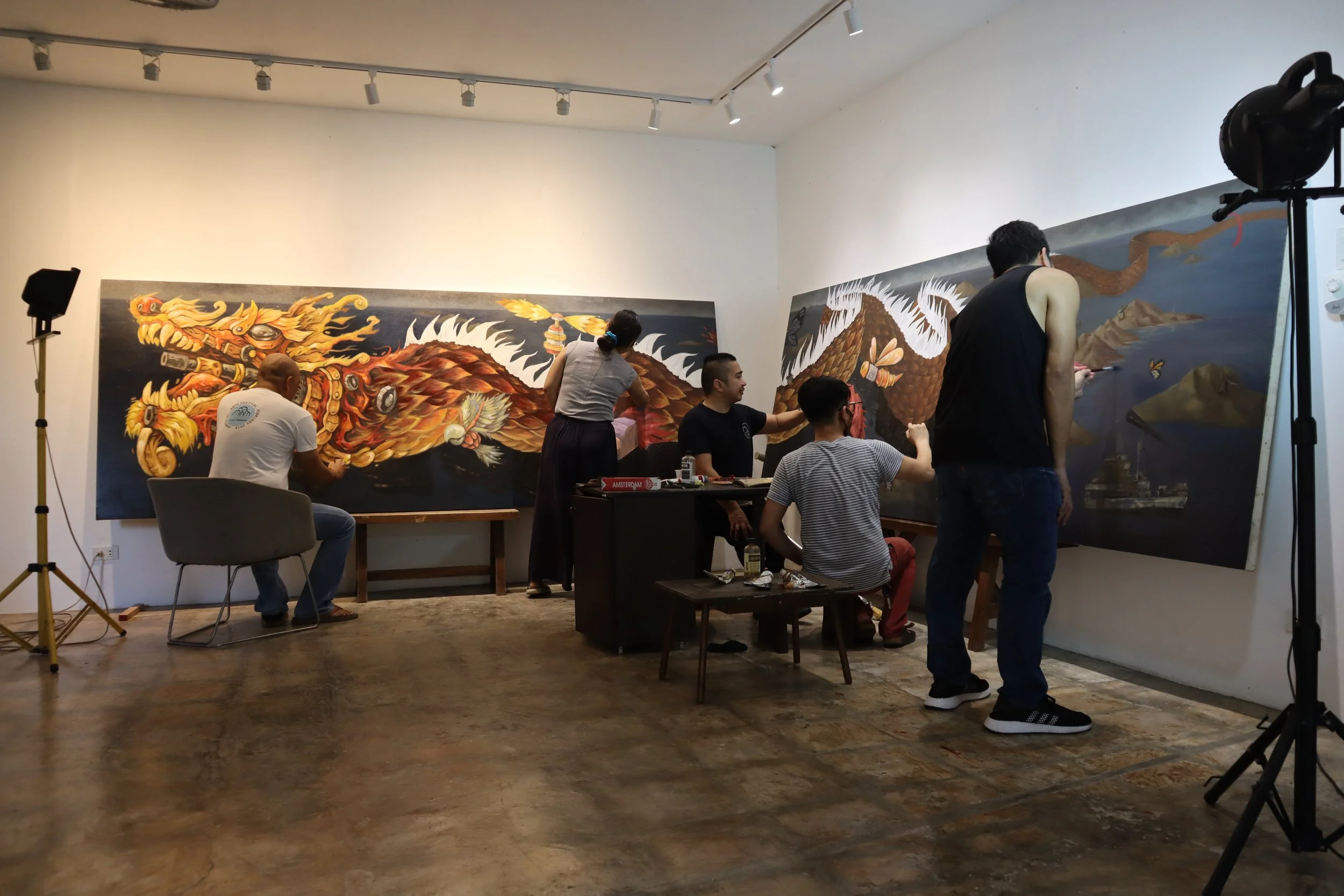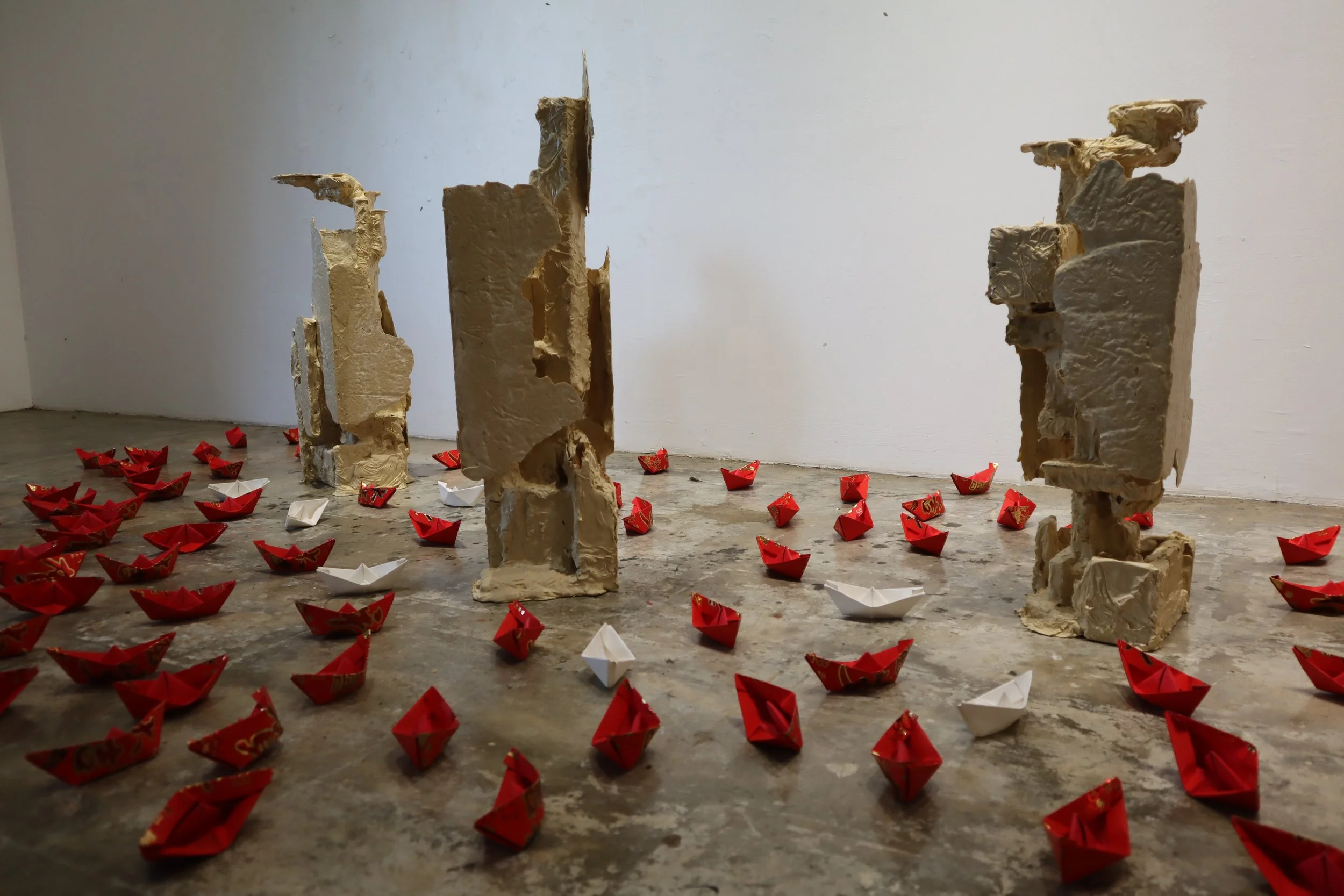 At this point, the task of facing this threat is upon us, the people, individually and in different facets of our lives. We are called upon to defend our homes - our personal territories, our boundaries, our safe spaces. In this exhibition Sa Pula, Sa Puti, we now, as a collective, have become the embodiment of the woman cloaked with the sun, ready to defend what is rightfully ours.