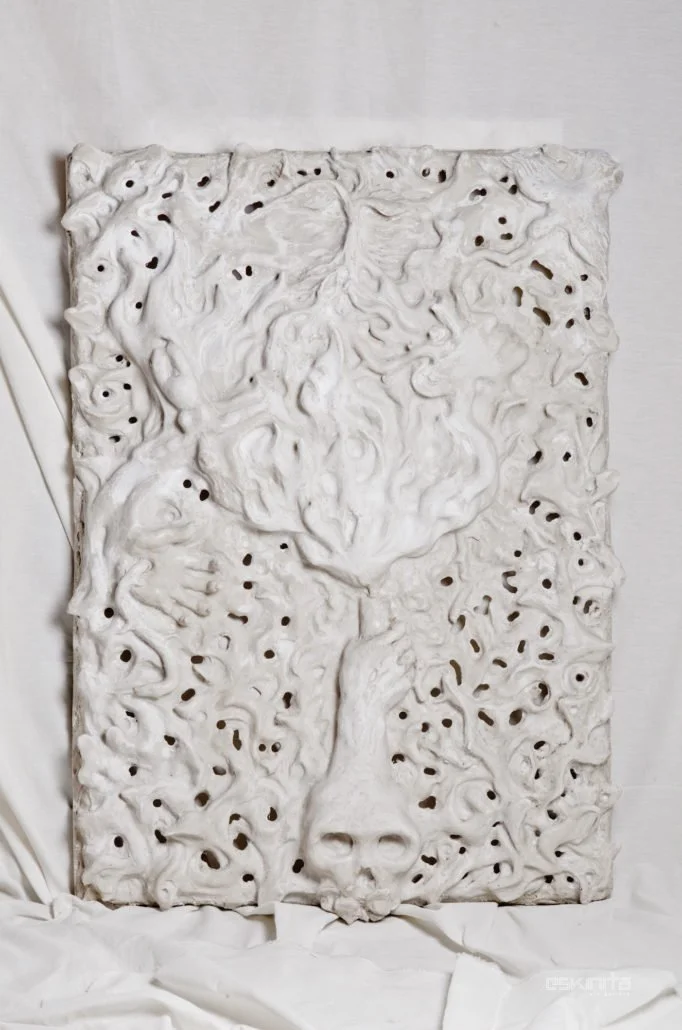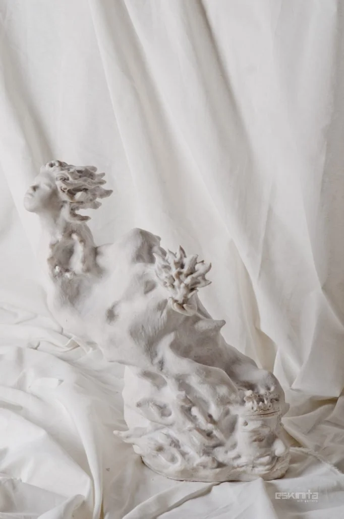Artist Mark Harry Gonzales is known for his cold-cast marble sculptures with forms that calls to mind fantastical sea creatures fused with familiar imagery. he often incorporates dynamic biomorphic elements; elongated, wave-like forms that give the impression that his sculptures are organic entities in the process of growth but caught mid-metamorphosis, suspended in a moment between what it was and what it will become. The artist’s fascination with undulating forms sprang up from his contemplations about the sea and its dual nature of nourisher and devourer. At first, he was taken by the serenity of the calm sea but then he also witnessed its capacity for destruction. Gonzales used such motifs in his early works to address topics such as environmental preservation.