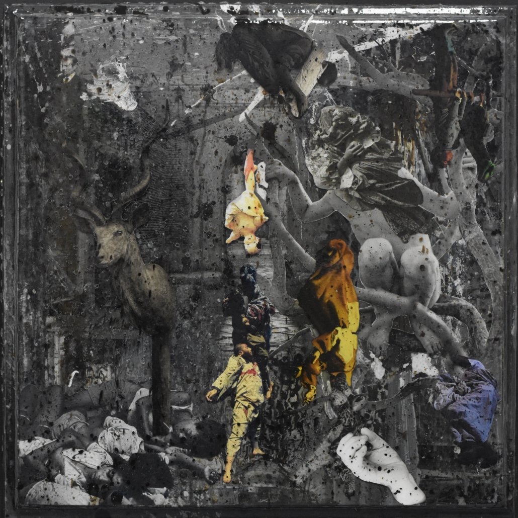 Sanchez made use of random images from various source of printed matters, cut and pasted, juxtaposed with one another to create a single story. Through this he creates a various layer of shifting narratives. The Heavy Ground series tells a story about the remarkable agony, feeling of loss, endless sorrow and sense of emptiness that has now been concretized and actualized in the labored breathing and writhing of the subjects consumed by the collage work.