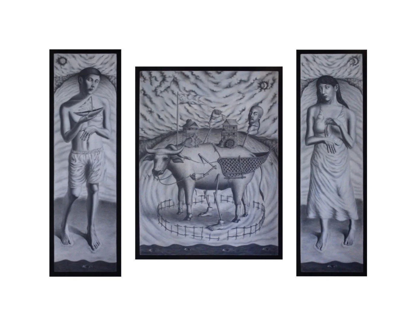 Newly initiated in the art scene, these young artists were mostly students of fine arts and other art-related disciplines, Esquillo and Habulan, together with other jurors, Mark Justiniani and Emmanuel Garibay, personally handpicked nine of them for showing their promising potential. Some of them were having exhibits in local art galleries and a number have already been recognized in national art competitions for their authentic visual language and in finding fresh approaches to painting and sculpture.